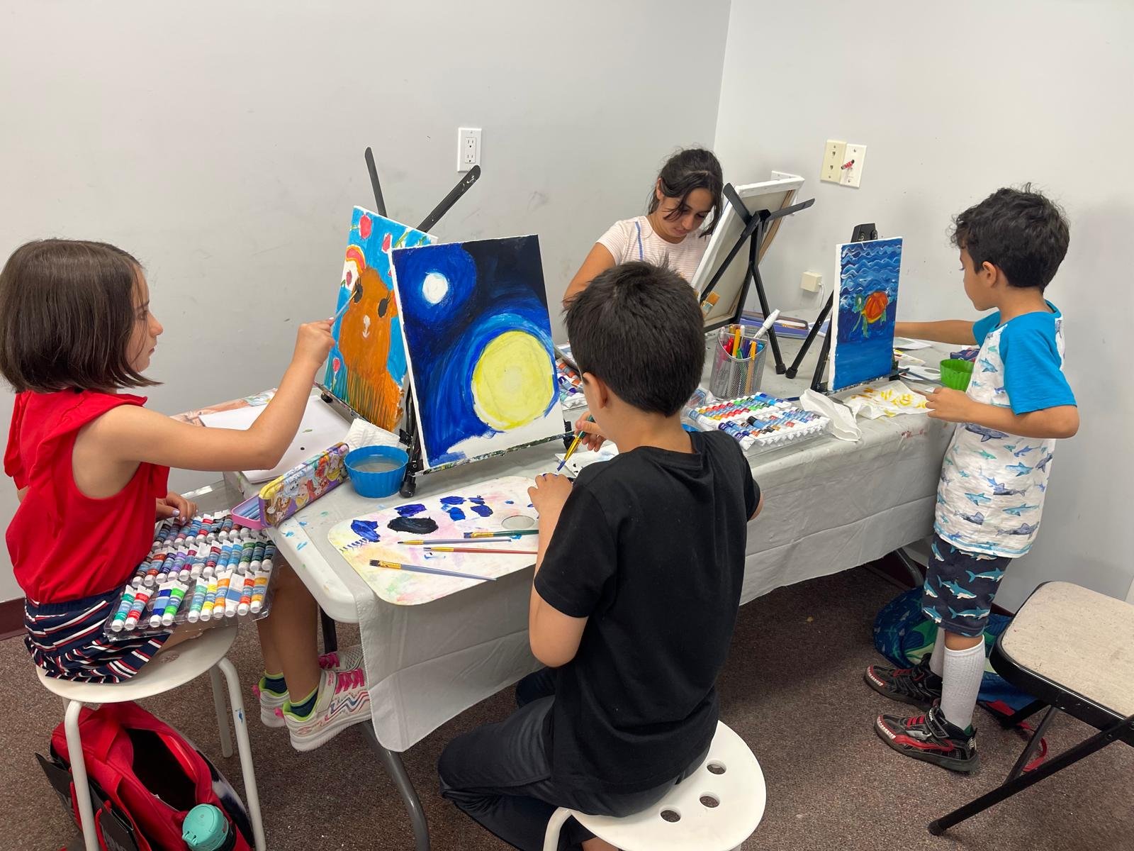 This class introduces young students to the basics of design and painting, with a special emphasis on strengthening drawing skills. Students work with lines, shapes, and perspective, practicing drawing still life, live models, and from imagination. In the painting section, they learn various techniques such as color blending, brush control, and layering using acrylic paints on canvas, pastels, and watercolor. This experience helps children develop proficiency in all of these techniques while enhancing their creativity and technical growth.